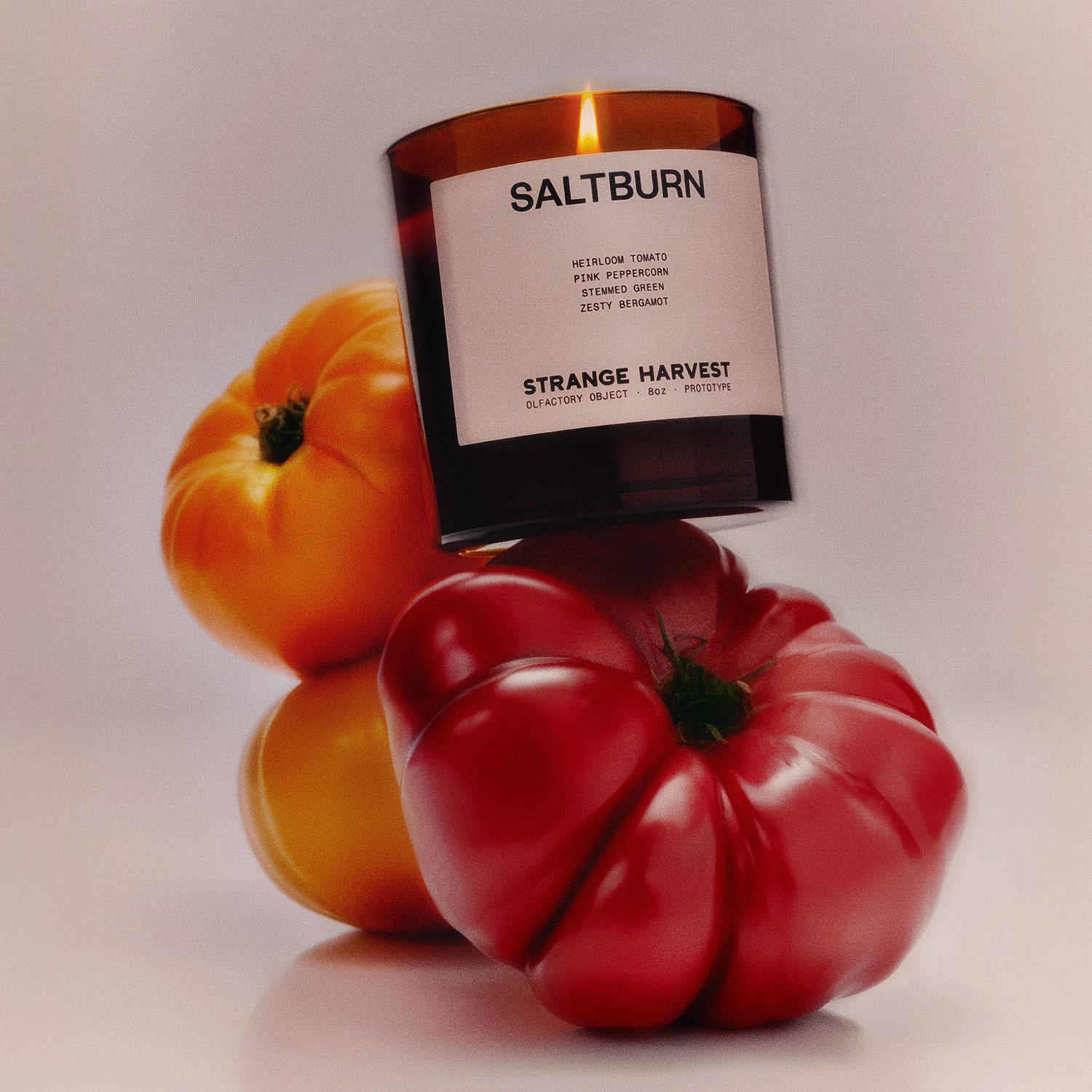 Built like a perfume, formulated for candles, and designed to actually throw. Saltburn doesn't lean sweet or nostalgic. It opens sharp with real tomato leaf, grounded by ripe heirloom tomato and a dry kick of pink pepper. No basil, no filler. We made this scent to feel alive: juicy, green, and grown up. It took months of testing and too many bad tomatoes to get here, but once it clicked, we just knew.